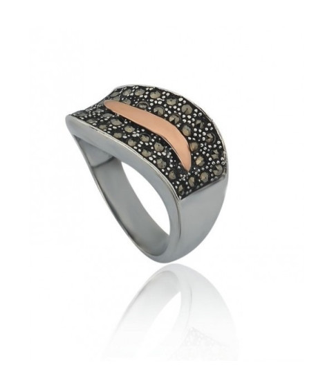 Anneau de carton Ondulé avec des Pierres Marcassites en Argent sterling 925 et Or 9K