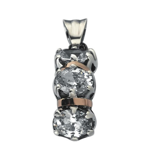 Médaille Bijou avec 3 Zircónias en Argent sterling 925 et Or 9K